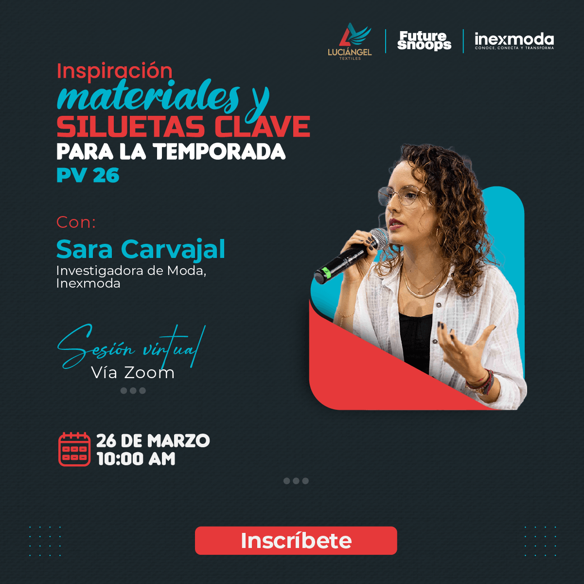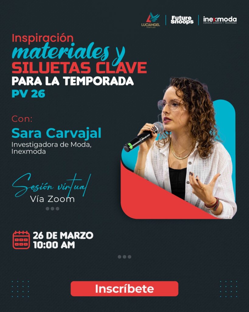Textiles Luciángel, en alianza con Inexmoda y Futura Snoops, te invita a una sesión virtual exclusiva donde exploraremos la inspiración de materiales y las siluetas que dominarán la temporada Primavera–Verano 2026.